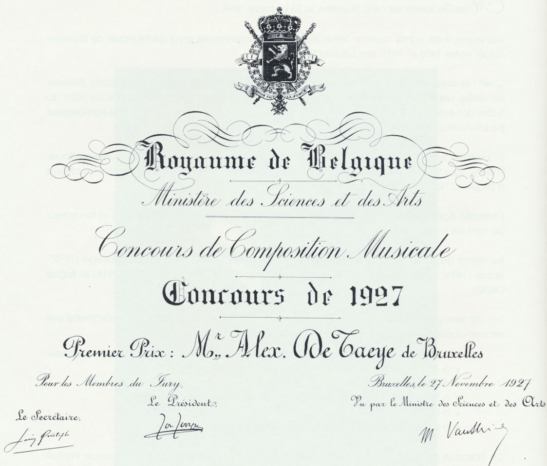 Alex De Taeye travaille également à la composition avec Paul Gilson, éminent pédagogue et formateur de tant de talents de l’époque.